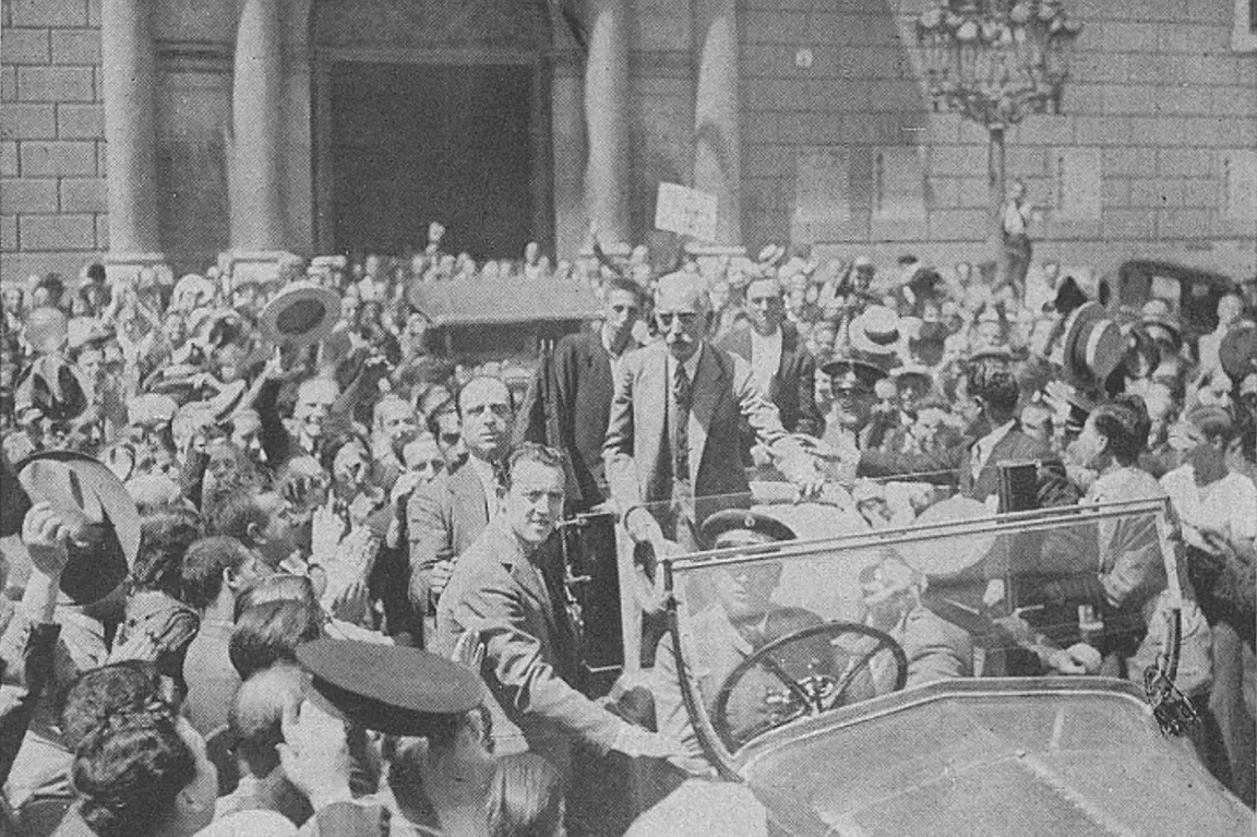 Francesc Macià, president de la Generalitat, rep l’aclamació popular després de la votació de l’Estatut de 1931. (‘Barcelona-Atracción’, octubre de 1931)