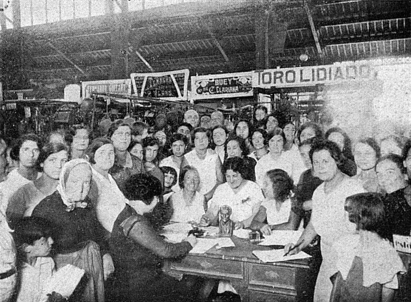 Venedores dels mercats populars, rubricant la seva adhesió a l’Estatut. (Barcelona-Atracción, octubre de 1931)